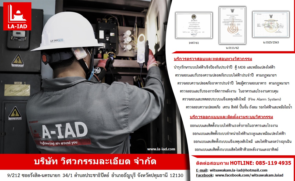 ตรวจสอบและทดสอบความปลอดภัยของระบบไฟฟ้าประจำปี